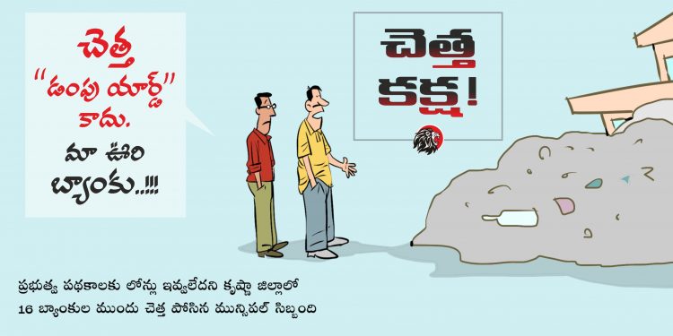 బ్యాంకుల ముందు చెత్త పోయించిన అధికార్లు