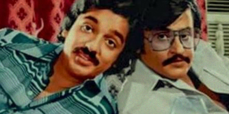 వారి మొద టి సినిమా ” అపూర్వ రాగంగళ్ ” . కె. బాలచందర్ డైరెక్ట్ చేసిన ఈ సినిమా లో రజనీ కాంత్ ఫస్ట్ షాట్ కూడా కమల్ తో గొడవ పడటం . ఆ సినిమా లో హీరోయిన్ శ్రీ విద్య భర్త రజనీ కాంత్ కాగా – లవర్ పాత్ర కమల్ హాసన్ చేశారు .