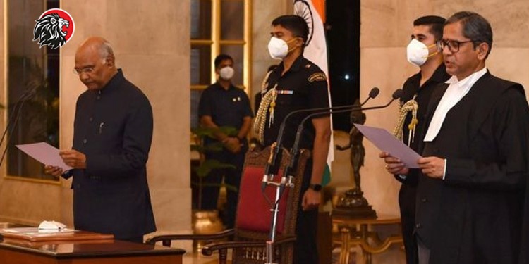 భారత 48వ ప్రధాన న్యాయమూర్తి గా జస్టిస్ ఎన్వీ రమణ ఇవాళ ప్రమాణ స్వీకారం చేశారు. ఢిల్లీలోని రాష్ట్రపతి భవన్లో భారత రాష్ట్రపతి రామ్నాథ్ కోవింద్ ఆయనతో ప్రమాణ స్వీకారం చేయించారు. సీజేఐ ఎస్.ఎ.బొబ్డే పదవీకాలం నిన్నటితో ముగియడంతో ఇవాళ ఆయన స్థానంలో జస్టిస్ రమణ బాధ్యతలు స్వీకరించారు. ఈ కార్యక్రమంలో ఉపరాష్ట్రపతి వెంకయ్య నాయుడు, ప్రధాని నరేంద్ర మోదీ, కేంద్ర మంత్రులు పాల్గొన్నారు. 2022 ఆగస్టు 26 వరకు ఆయన ఈ పదవిలో కొనసాగనున్నారు. భారత ప్రధాన న్యాయమూర్తి పదవిని అలంకరించిన రెండో తెలుగు వ్యక్తిగా జస్టిస్ రమణ చరిత్ర సృష్టించారు.