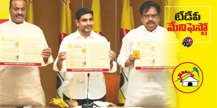 పురపాలక ఎన్నికల నేపథ్యంలో టీడీపీ ఎన్నికల మేనిఫెస్టోను ‘పల్లెలు గెలిచాయి..ఇప్పుడిక మనవంతు’ పేరుతో టీడీపీ జాతీయ ప్రధాన కార్యదర్శి నారా లోకేష్ మంగళగిరి పార్టీ కార్యాలయంలో విడుదల చేశారు. మొత్తం 10 అంశాలతో కూడిన మేనిఫెస్టోను ఆయన విడుదల చేశారు. కార్యక్రమంలో టీడీపీ రాష్ట్ర అధ్యక్షుడు అచ్చెన్నాయుడు, వర్ల రామయ్య, పంచుమర్తి అనురాధ తదితరులు పాల్గొన్నారు.