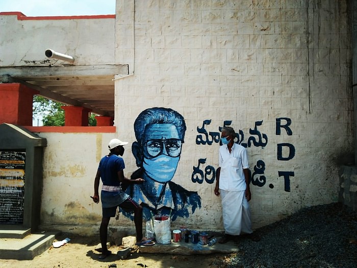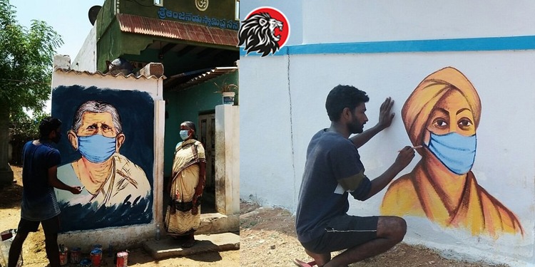 ఆంధ్రప్రదేశ్.. అనంతపూర్ జిల్లా కదిరి.. ఉదయం 7 గంటలు కావస్తోంది. ఓ యువకుడు రంగుల డబ్బాలు, పెయింట్ బ్రష్ లు పట్టుకొని ఊరంతా తిరుగుతున్నాడు. ఊరి నడిబొడ్డున ఓ గోడ దగ్గర ఆగిపోయాడు. వెంటనే బ్రష్ లు తీసి చకచక పెయింట్సింగ్ వేశాడు. కరోనా విరుచుకుపడుతుండటంతో గ్రామీణులకు అవగాహన కల్పించేందుకు మాస్కుల ధరించే ఆవశ్యకతపై చక్కని పెయింటింగ్స్ వేశారు. ఊళ్లో ఏ ప్రధాన వీధికి వెళ్లినా కరోనా చిత్రాలే కనిపిస్తున్నాయి.